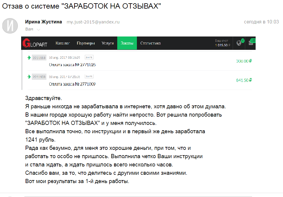 Да, гарантии работоспособности данной системы. Если вы точно будете выполнять все рекомендации, то первый доход получите уже в день, когда разместите свой первый отзыв.
